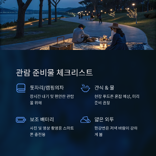 | 돗자리/캠핑의자 | 장시간 대기 및 편안한 관람을 위해 |