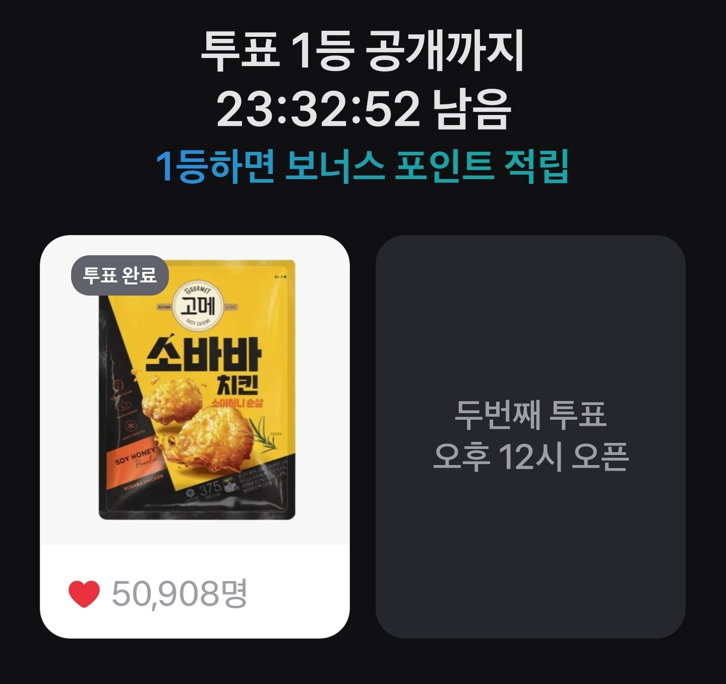 치킨은 언제나 투표가 몰리는 메뉴죠.