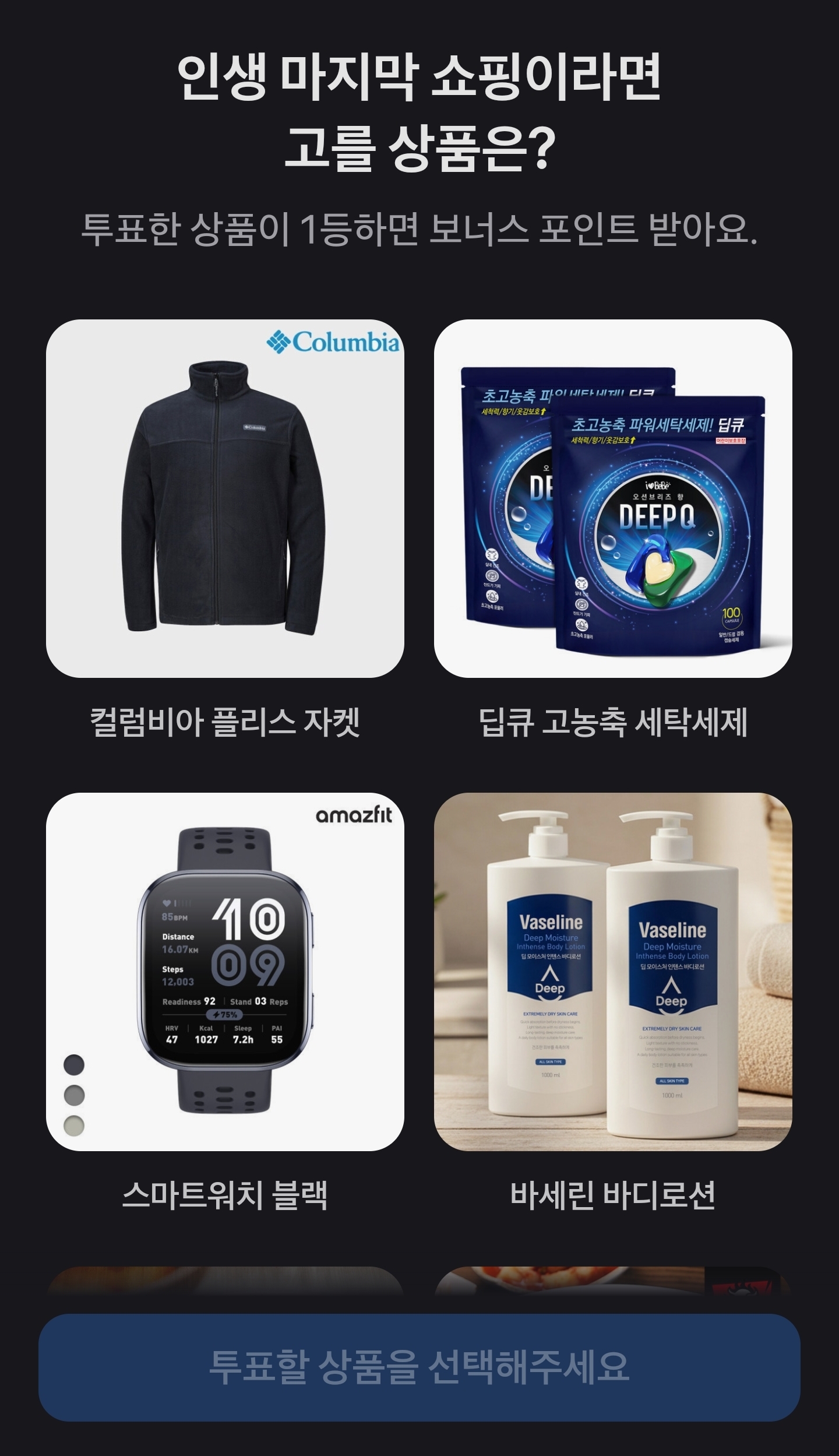 투표 1등을 맞히면 보너스 포인트까지 받을 수 있어요.