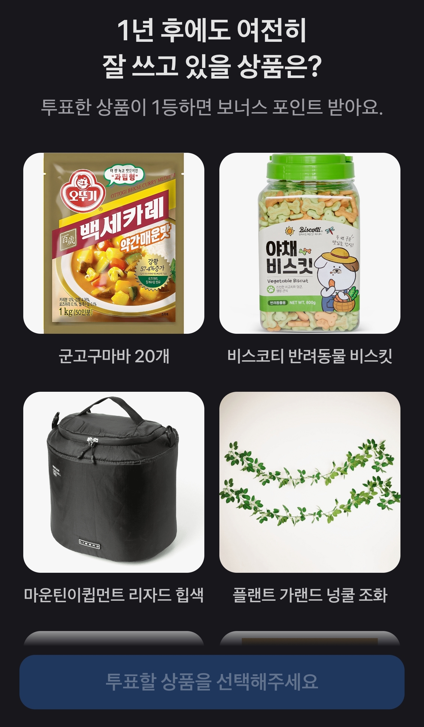 이번 투표는 생활 아이템과 패션 아이템이 함께 포함된 구조입니다