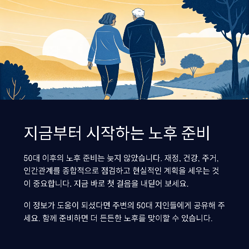 포괄적으로 접근해야 합니다. 이 글에서는 50대부터 실천 가능한 노후 준비 전략을